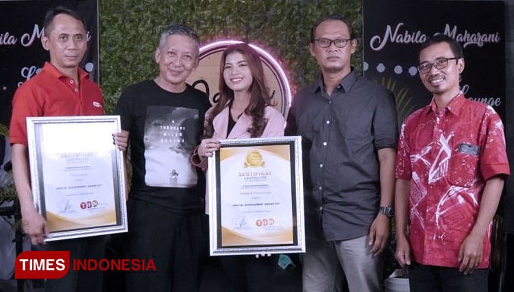 YOGYAKARTA – Musisi milenial Yogyakarta Nabila Maharani menerima penghargaan Anugerah TIMES Indonesia atau ATI 2021. Sertifikat penghargaan Kategori Special Achievement Award DIY 2021 diserahkan langsung oeh Kepala Biro TIMES Indonesia Yogyakarta A Riyadi Amar kepada Nabila bersama ayahnya Bambang.