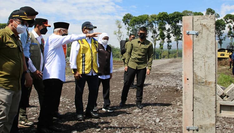 TIMES Jogja/Sekjen PUPR RI Mohammad Zainal Fatah dampingi Wapres RI KH Ma'ruf Amin meninjau lokasi pembangunan Hunian Sementara (Huntara) bagi korban terdampak erupsi Gunung Semeru di Desa Sumbermujur, Kecamatan Candipuro, Kabupaten Lumajang.